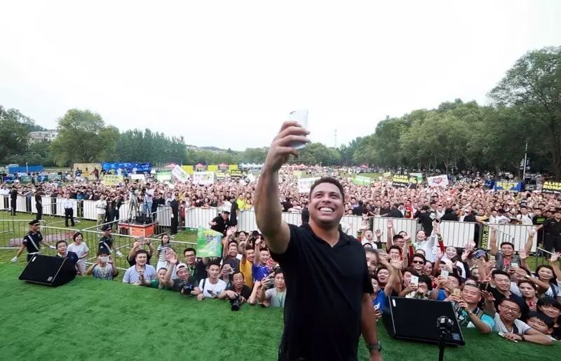 最后,現(xiàn)場贏得九宮格射門的三名幸運觀眾,與羅納爾多零距離互動,并合影留念。這也讓現(xiàn)場的其他的球迷羨慕不已。